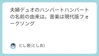 芸能タレント 夫婦デュオのハンバートハンバートの名前の由来は。音楽は現代版フォークソング ハンバート ハンバートは、佐藤良成さんと佐野遊穂さんによる夫婦デュオです。2025年9月29日から始まるNHK連続テレビ小説『ばけばけ』の主題歌「笑ったり転んだり」を担当することが決まり、注目が集まっています。今回はハンバートハンバートの名... 2025.09.21 芸能タレント