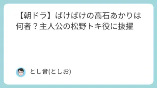 芸能タレント 【朝ドラ】ばけばけの高石あかりは何者?主人公の松野トキ役に抜擢 2025年後期のNHKの朝ドラ『ばけばけ』のヒロインに若手実力派の女優・高石あかりさんが大抜擢されました。映画『ベイビーわるきゅーれ』で鮮烈な印象を残し、TAMA映画賞・最優秀新進女優賞も受賞した彼女が、主人公・松野トキ役として朝ドラ「ばけ... 2025.09.24 芸能タレント