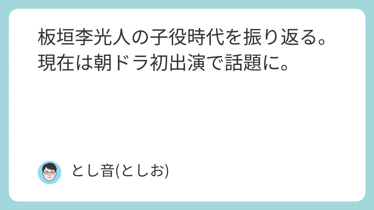 今回は「板垣李光人の子役時代を振り返る。現在は朝ドラ初出演で話題に」のテーマでお届けしました。