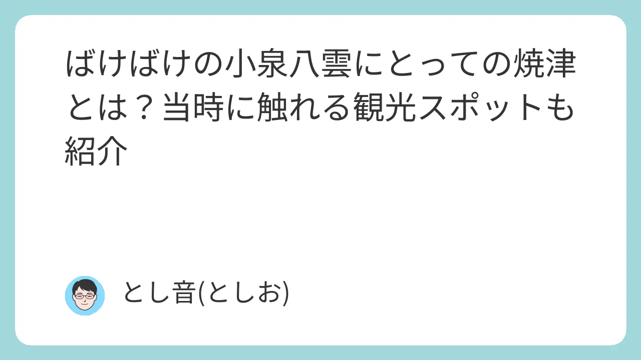 今回の記事では、朝ドラ『ばけばけ』で注目される小泉八雲と、彼が晩年の日々を過ごした焼津の関係について紹介しました。