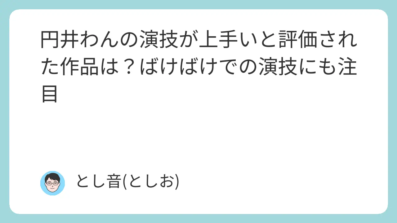 今回は「円井わんの演技が上手いと評価された作品は?ばけばけでの演技にも注目」というテーマでお届けしました。