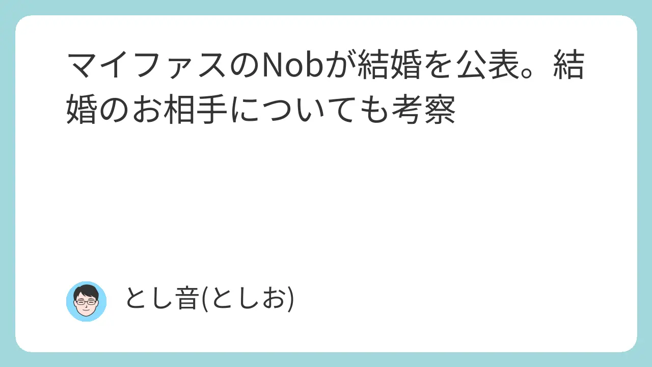 今回は「マイファスのNobが結婚を公表。結婚のお相手についても考察」というテーマでお届けしました。