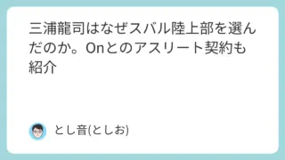 スポーツ選手 三浦龍司はなぜスバル陸上部を選んだのか。Onとのアスリート契約も紹介 陸上3000m障害で活躍する三浦龍司選手は、大学卒業後にスバル陸上競技部を新たな舞台として選びました。この記事では、三浦選手が「なぜスバルに入社したのか」「他の実業団ではなくスバルを選んだ理由」についてお届けします。また三浦選手は2025年... 2025.09.13 スポーツ選手